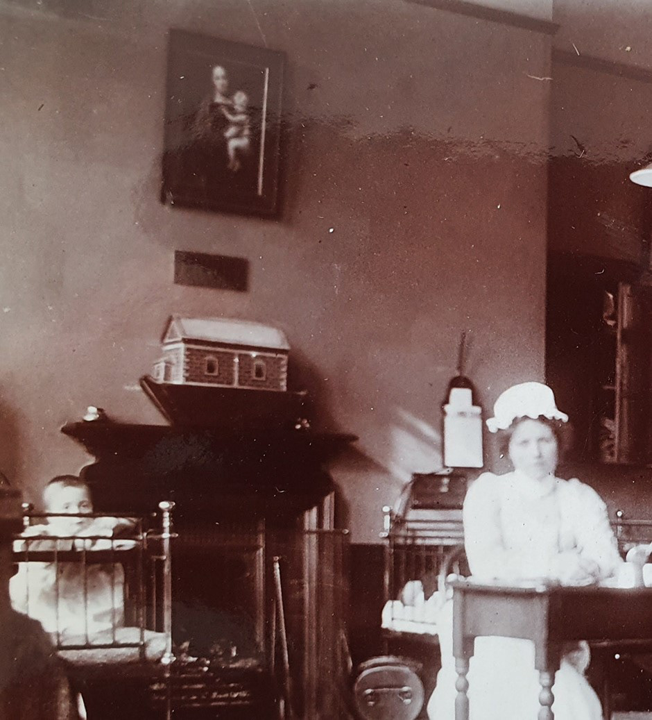 Detail from 'Nurse Storey', Samuel Fielden Ward, Great Portland Street 1905 / by Frank Ruck / Courtesy RNOH